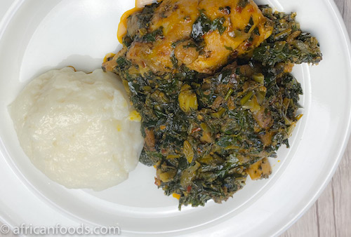 Serve with pounded yam, eba, fufu, semovita or ground rice.
