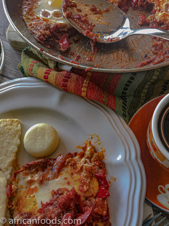 This egg meal, is popular in the Mediterranean, and I cannot say for a certainty the country, it originated from, however many favor the idea that is from North Africa.